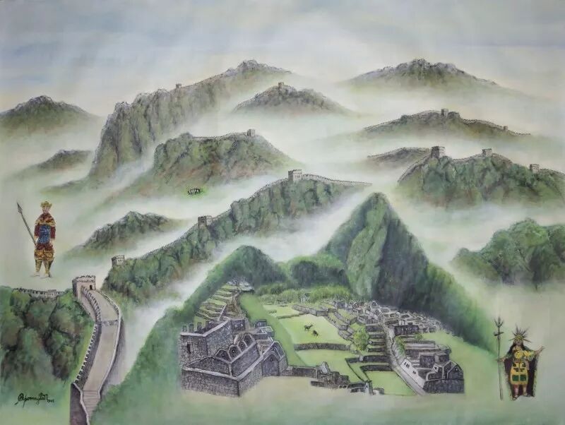 En Perú, la comida china es muy popular. Se llama "chifa" en el restaurante con los ingredientes locales exóticos, arroz frito, fideos y ravioles fritos soplados de distancia, no sólo por el pueblo peruano, se han convertido en una gran atracción para atraer a los turistas extranjeros. Estamos fascinados por los pandas gigantes más amorosos que están encantados con el zodíaco chino XII. Tal vez convocado por la antigua sangre tibetano, cada uno de los peruanos sueños de viajar a China y ver la majestuosa Gran Muralla, vista de las Tres Gargantas contundente y disfrutar de la belleza de Emei, productos elegantes jardines de Suzhou, flores y exploración de Qin Shi Huang Kunming primavera City Tour Terracotta Warriors conmocionado. En la búsqueda de los antiguos lazos entre las civilizaciones asiática y estadounidense, he creado más de 1.000 obras, defendido el espíritu de solidaridad y pedido la paz mundial. Una de mis primeras obras fue pintar mi ciudad natal Machu Picchu y la Gran Muralla de China en un pedazo de papel de paja, haciendo eco de los dos milagros del mundo.