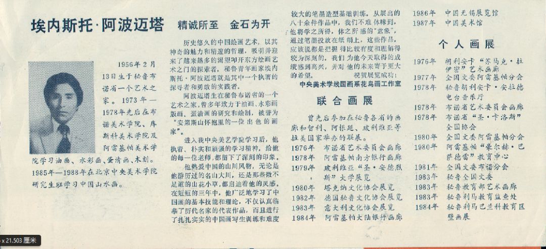 [Autor: relación de Ernesto • • Mitre Sports International Awa Chang (Ernesto Apomayta Chambi), Perú artistas famosos, de 1985 a 1988 y se graduó de la Academia China Central de Bellas Artes cursos graduados de aves, bajo la tutela de Li Keran, Kuo Cong y otros maestros, es actualmente Se dedica principalmente a la investigación y creación de arte colombiano prehistórico, la historia del arte oriental y occidental, el arte de la pintura china y los murales. Para trabajos más personales, visite nuestro sitio web www.apomaytaart.com. Traductor: Yuan Yushu, Doctor en Literatura Latinoamericana, Universidad Complutense, Madrid, España